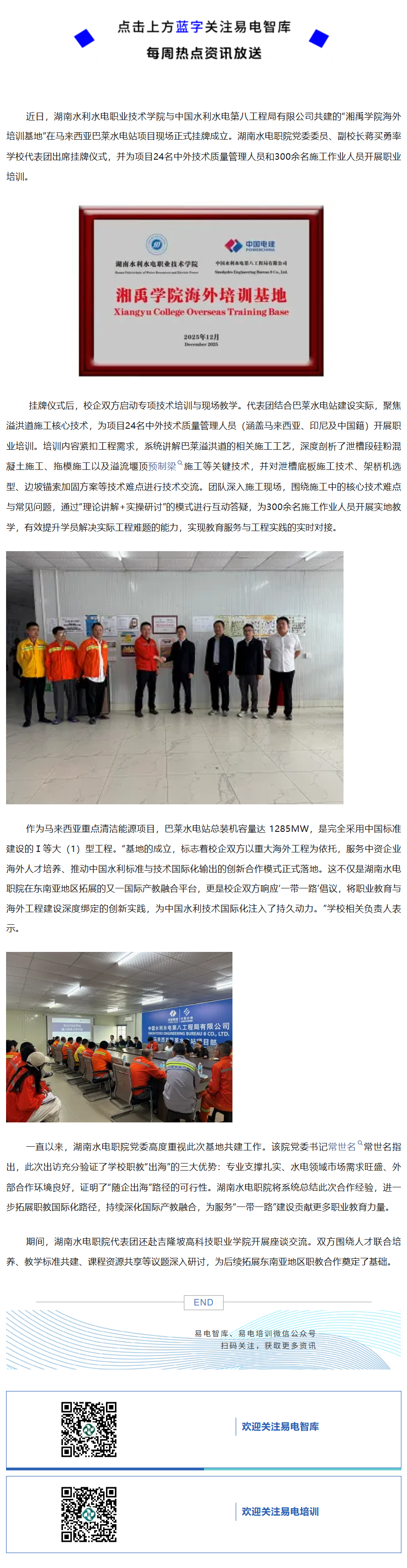 湖南水电职院在马来西亚巴莱水电站成立海外培训基地