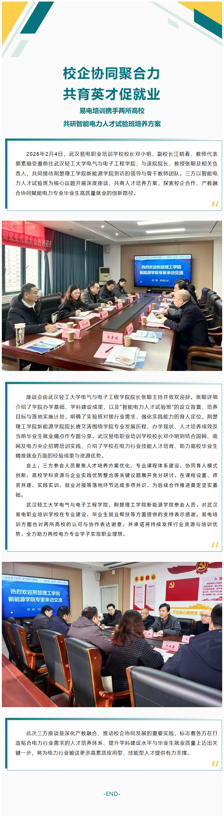 校企协同聚合力 共育英才促就业丨易电培训携手两所高校共研智能电力人才试验班培养方案